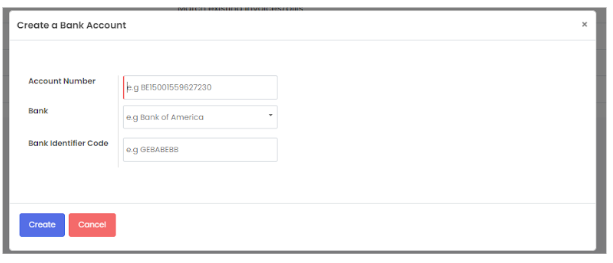 - Klik configuration > add a bank account User perlu mengisikan id bank, nomor rekening dan nama bank