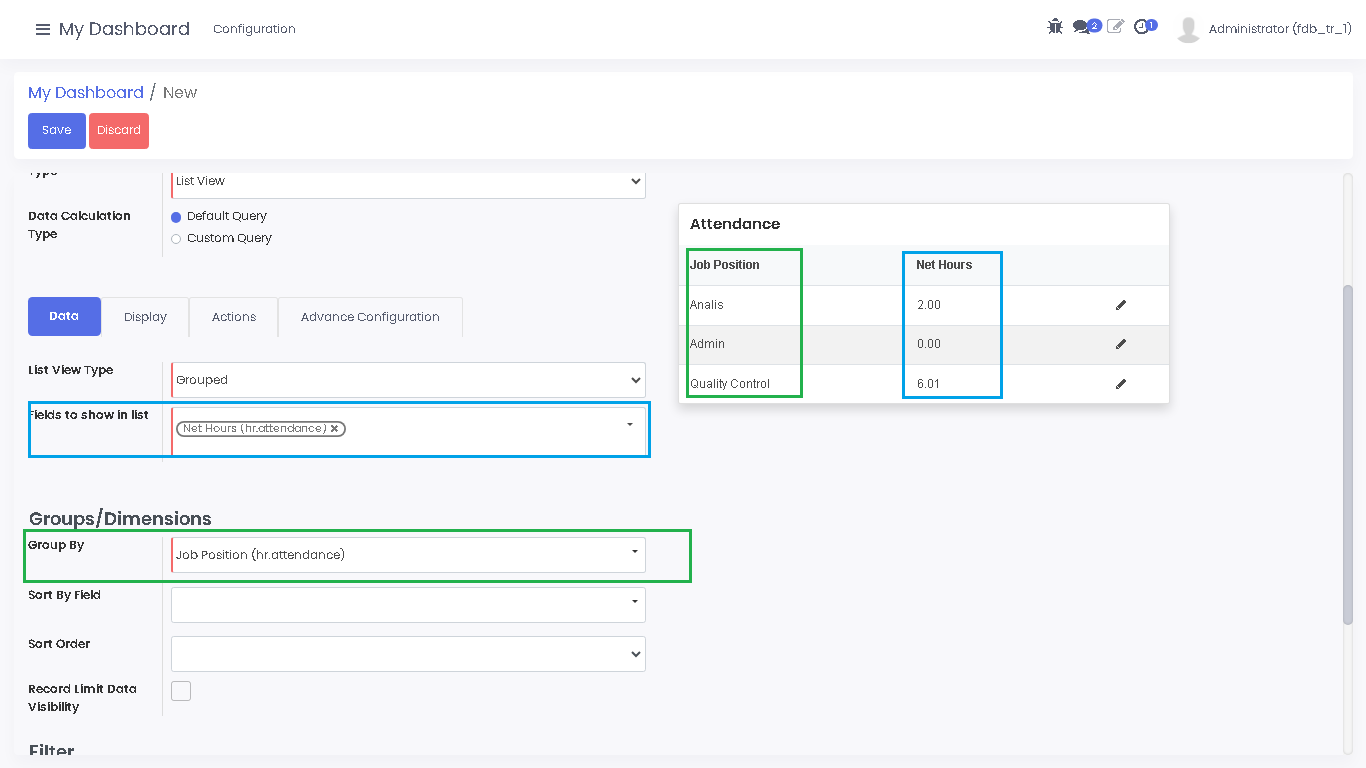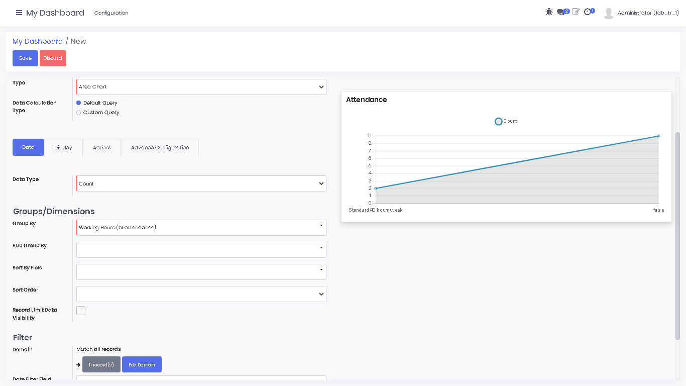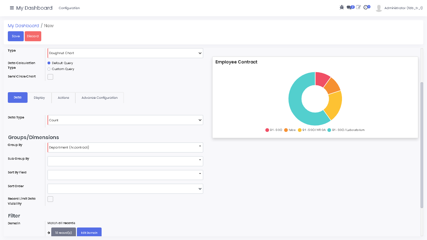 Tab 'Data' digunakan untuk menambah/memilih data yang ingin ditampilkan. Informasi Record Type terdiri dari count, sum dan average. bila memilih sum dan average akan tampil informasi Record Field, user diminta memilih daftar informasi yang akan digunakan untuk perhitungan sum atau average*.