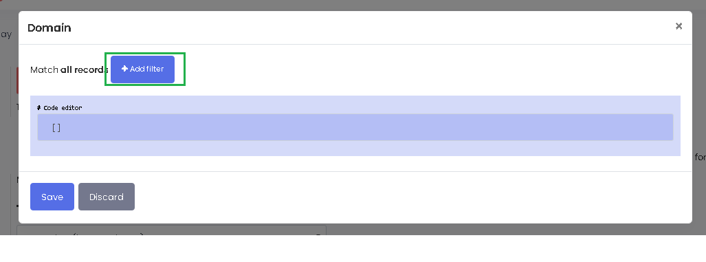Pada bagian informasi Filter, user bisa menambahkan kondisi untuk filter hasil yang akan disajikan oleh chart dengan klik tombol edit Domain