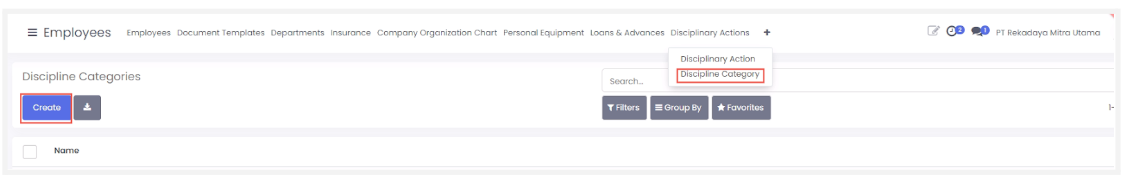 - Pilih menu discipline action > discipline category kemudian klik create.