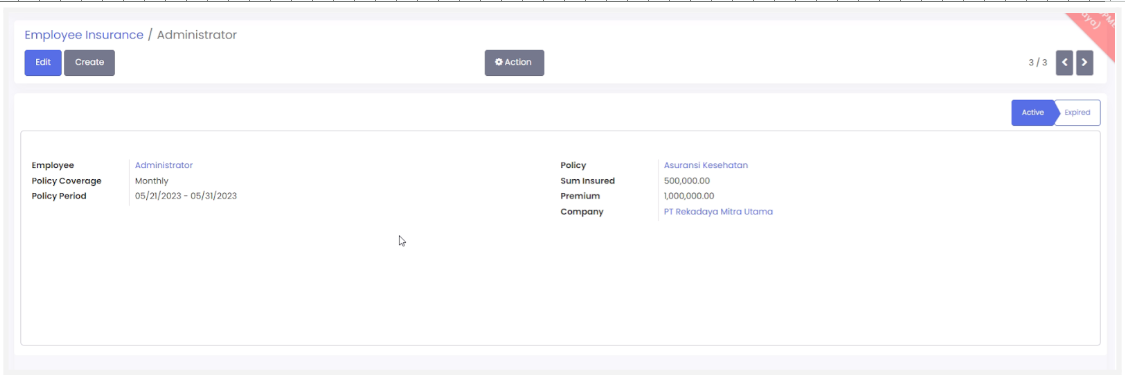 - Status asuransi menjadi active dimana status akan otomatis berubah menjadi expired ketika periode asuransi berakhir.