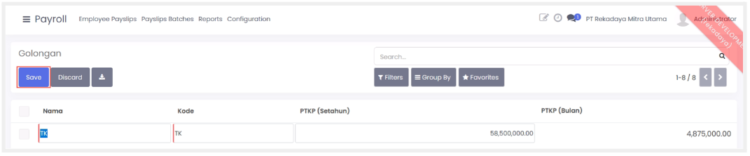 - Payroll code: Isi data untuk kode pada data gaji karyawan