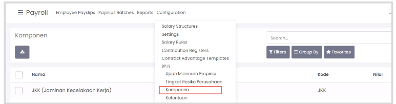 Fitur ini berfungsi untuk membuat master data konfigurasi komponen gaji perusahaan. Anda dapat menentukan perhitungan dan kategori komponen berdasarkan posisi/level pekerjaan. Fitur ini juga akan terhubung dengan struktur gaji: