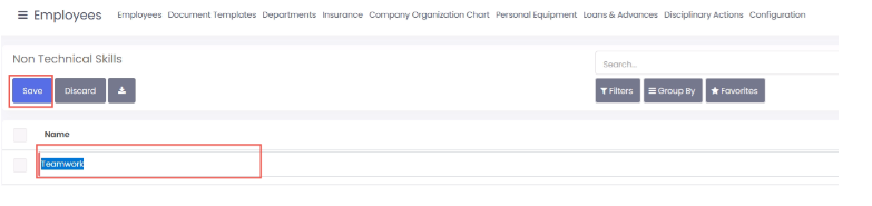 - Pilih menu configuration > skills > non technical skill kemudian klik create.