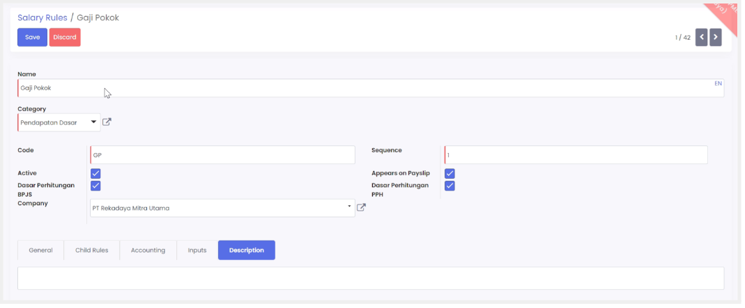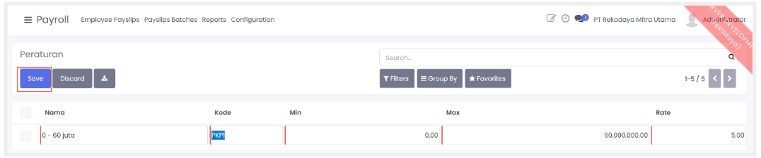 - Rate: Isi dengan rate perhitungan ketentuan pesangon yang akan dikalikan dengan gaji/benefit karyawan