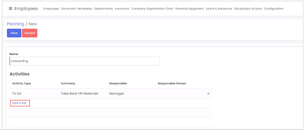 - Klik add a line kemudian ceklis tipe aktivitas yang termasuk ke dalam rencana aktivitas. Klik save.