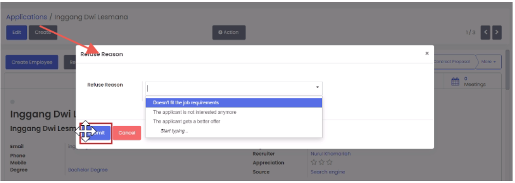 Fitur ini berfungsi untuk membuat master data alasan penolakan ketika memproses rekrutmen: