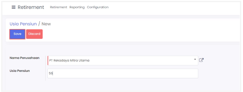 Isi kolom usia pensiun karyawan kemudian klik save.